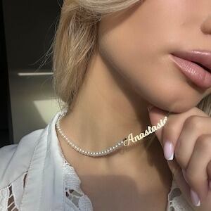 【#lufine】ネームネックレス/パールチェーン[オーダー商品]