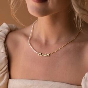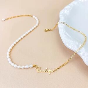 【#lufine】ネームネックレス/淡水パール×ボストンチェーン[オーダー商品]