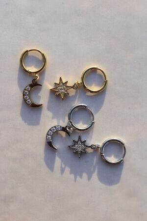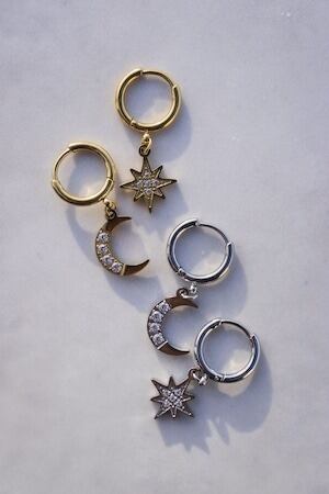 耳元で輝く月と太陽のコンビネーションが魅力のsun and moon pierce。