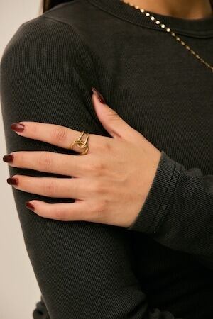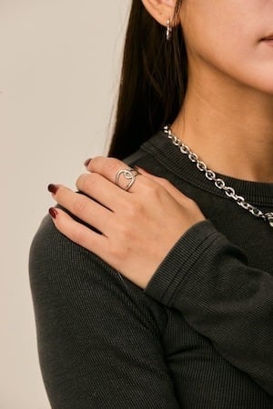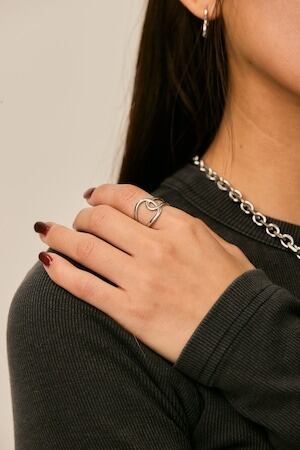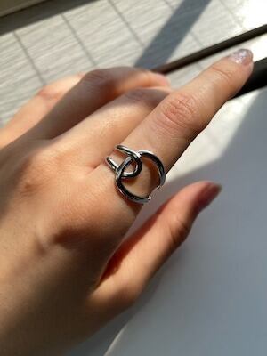 単体でつけても、シンプルなリングと重ねてつけても使えるアイテムです。