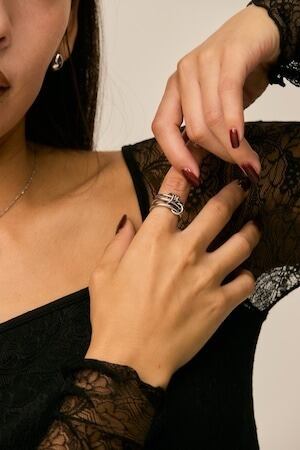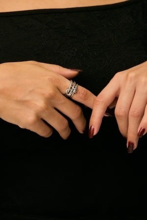 細身ながら3連でつながったボリュームのあるデザインで、1つで存在感を放ち手元をオシャレに仕上げてくれるリング。