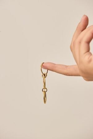 変形されたデザイン性の高いモチーフとなっており、スタイリングを格上げしてくれるアイテムです。