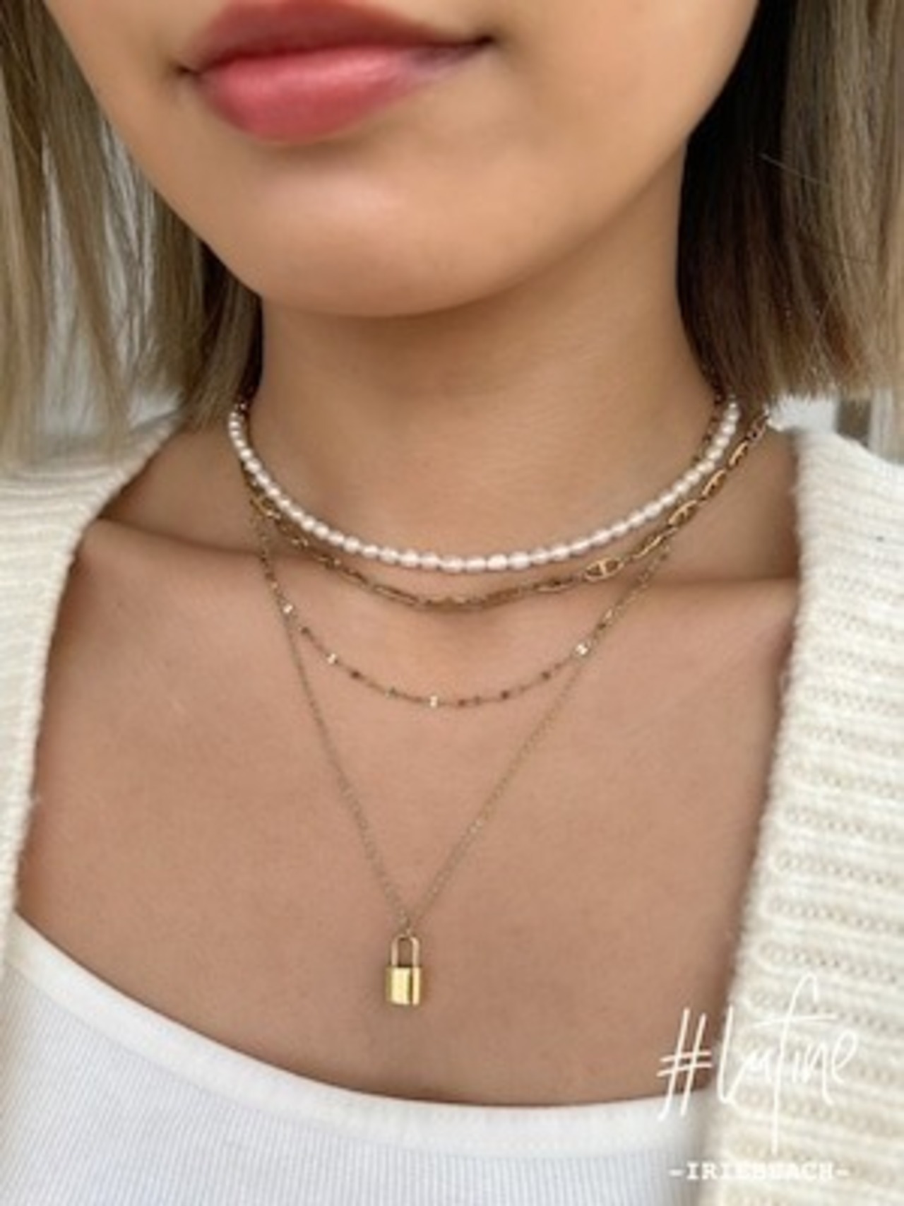 2種類の華奢なチェーンを重ねることで、